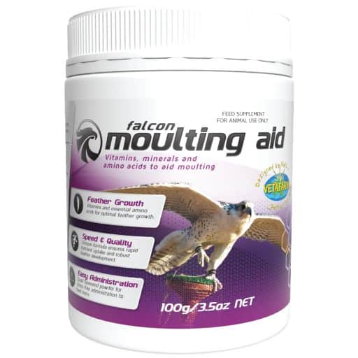 Falcon Moulting Aid was formulated by avian veterinarians for optimal feather moult, growth and development. Recommended for use when the Falcon is moulting.