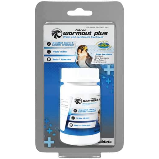 Falcon Wormout Plus Tablets were developed by avian veterinarians for the treatment and prevention of all intestinal worms and coccidia in falcons.
